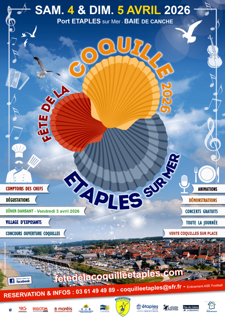 La Fête de la Coquille a lieu chaque année lors du week-end de Pâques et rassemble lors de chaque édition plus de 20 000 personnes venues apprécier les dégustations, les repas et profiter de l’ambiance des concerts de Rock folk Celtique. La Fête de la coquille met en lumière l’authentique Pecten Maximus au « Comptoir des Chefs » où les épicuriens peuvent assister aux démonstrations culinaires animées par des Chefs locaux et amoureux des produits de la mer. Labellisée Événement Gastronomie des Hauts-de-France il y a 3 ans, ce rendez-vous annuel est l’occasion de profiter d’un week-end festif organisé en l’honneur de la fameuse Coquille Saint-Jacques, la véritable, pêchée par les Coquillards de la flotte étaploise. La station de tourisme Etaples-sur-Mer est réputée pour son riche patrimoine culturel et matériel de la pêche artisanale maritime, mais aussi pour son environnement naturel d’exception de la Baie de Canche depuis le Port d’Etaples-sur-Mer.